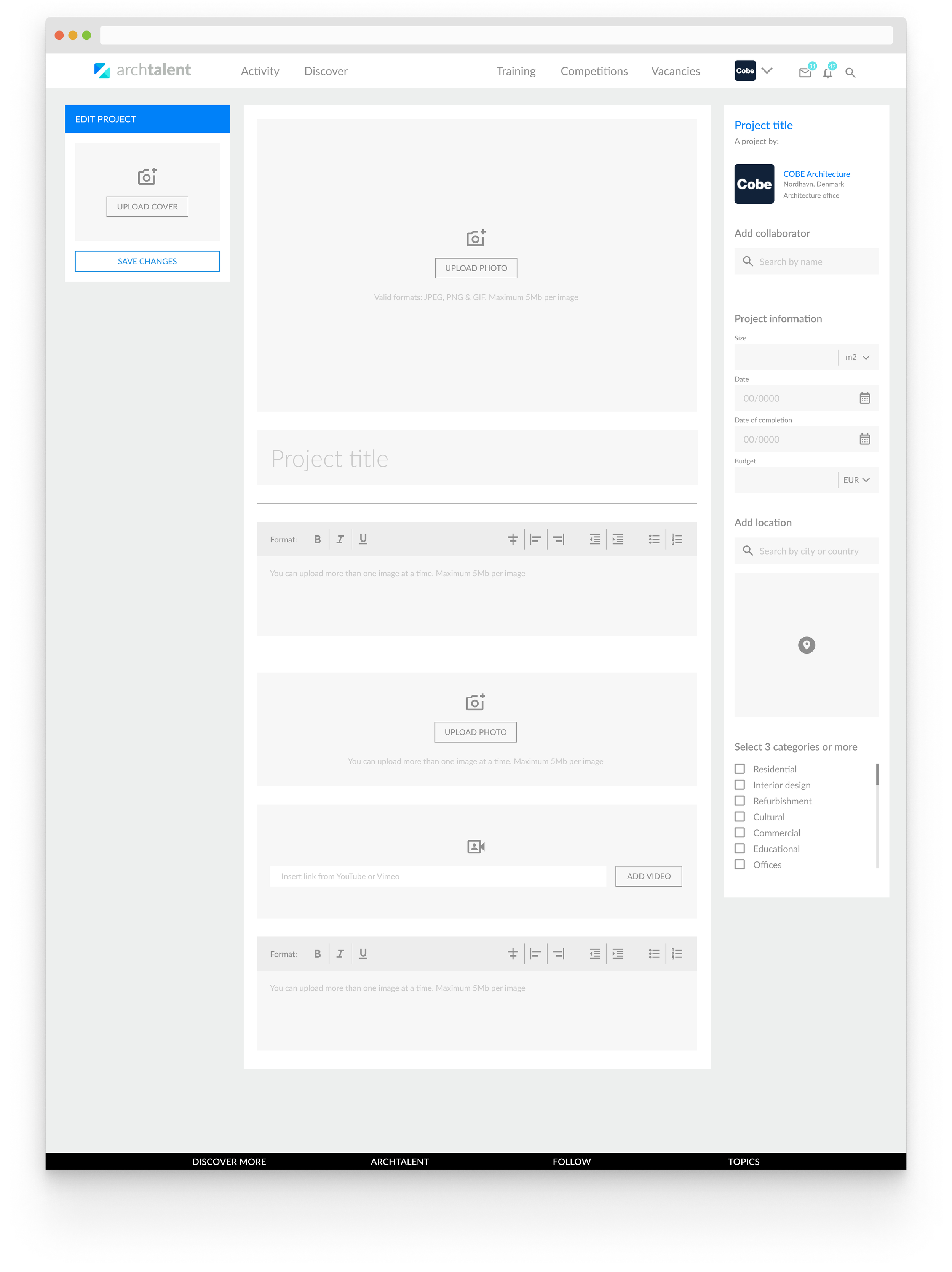 A tool for the users of archtalent to upload their projects, add collaborators and show their work to the world.
